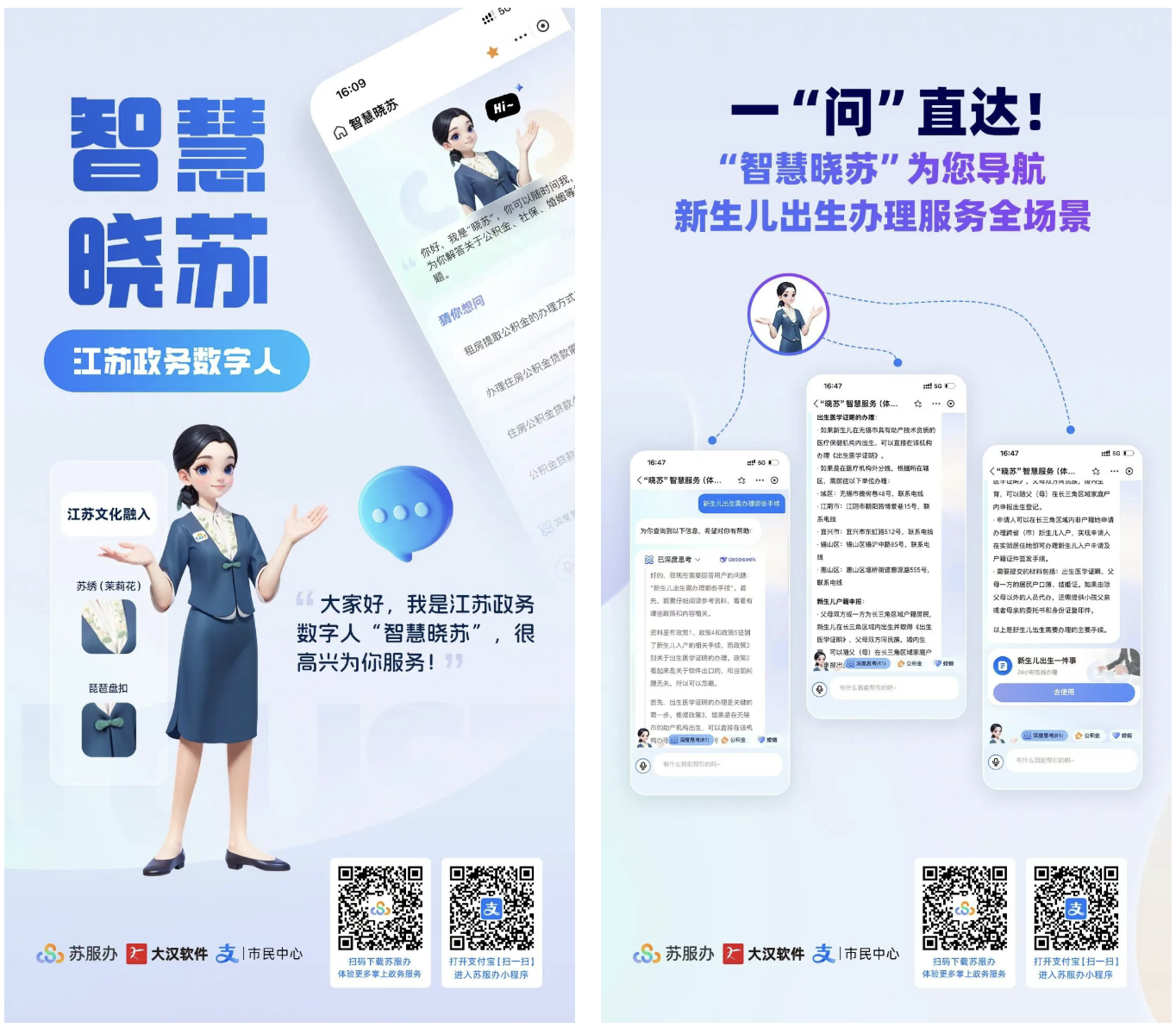结合大汉软件与支付宝为江苏“苏服办”联合打造的数字政务人“智慧晓苏”,房迎重点分享了这一创新成果在用户体验与场景融合上的两大突破: