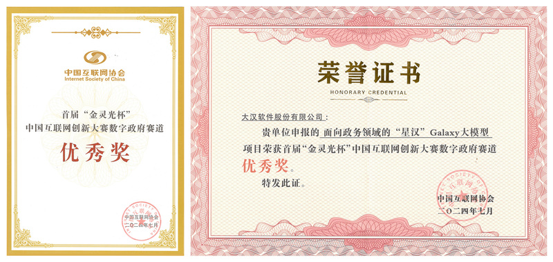 近日,由中国互联网协会主办的2024(第二十三届)中国互联网大会在北京召开。大汉软件“星汉”Galaxy大模型凭借其出色的技术创新、深入的行业探索、前瞻的场景应用,在首届“金灵光杯”中国互联网创新大赛专题赛上,斩获数字政府专题赛“优秀奖”。 大汉软件“星汉”Galaxy大模型基于主流的深度学习架构,构建了由支撑底座、模型训练平台、AI能力平台、Agent智能体构建平台4大核心板块组成的强大体系,推动行业应用深度专业化、场景化及快速产品化。通过多阶段训练策略与多重注意力机制,优化了大模型的语言处理、认知解析与逻辑推理能力,在智能问答、边问边办、政策解读、AI创作、会议助手、12345政务热线助手、智能报告、辅助检索等多个应用场景扩展方面发挥了关键作用。该大模型在政策咨询、事项办理、智能公文、智能会议等多个应用场景上,进入中国信通院发布的《2024政务大模型产业图谱》。 作为一家专注于数字政府领域专业的软件开发商和技术服务商,大汉软件将一如既往深耕技术创新,通过不断迭代与升级人工智能、大数据、云计算等技术,为数字政府建设提供数字化、智能化、高效的解决方案。 |